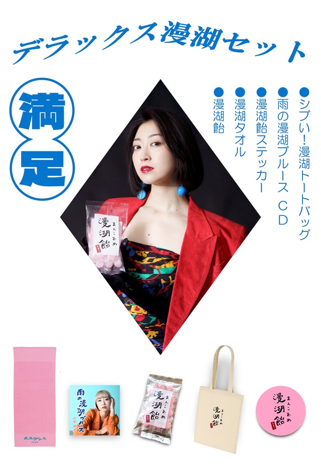 大変お得なデラックスセットをご用意しました! ●漫湖飴 ●「雨の漫湖ブルース」CD ●漫湖飴ステッカー ●シブい!漫湖トートバッグ ●漫湖タオル 漫湖飴ファンにはたまらないセット! この機会をお見逃しなく! 〜・〜・〜・〜・〜・〜・〜・〜・〜 大人気!漫湖飴のパッケージが そのままトートバッグになりました♪ みんなの注目を集めること間違いなし⭐︎ 漫湖飴とCDを入れて、さぁ出かけよう! --トートバッグサイズ表(cm)-- 高さ42/底幅37/ハンドル長70 マチなし 内容量 約5L 色 ナチュラル